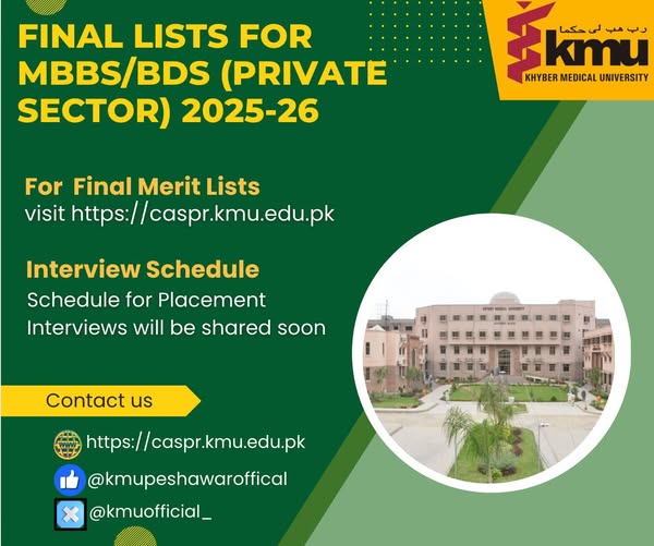 Aspiring medical students in Pakistan have a reason to celebrate as Khyber Medical University, Peshawar has officially announced the KMU Final Merit List. This release provides transparency and clarity for candidates seeking admission into the prestigious BDS and MBBS programs, helping them confirm their eligibility for the upcoming academic session.