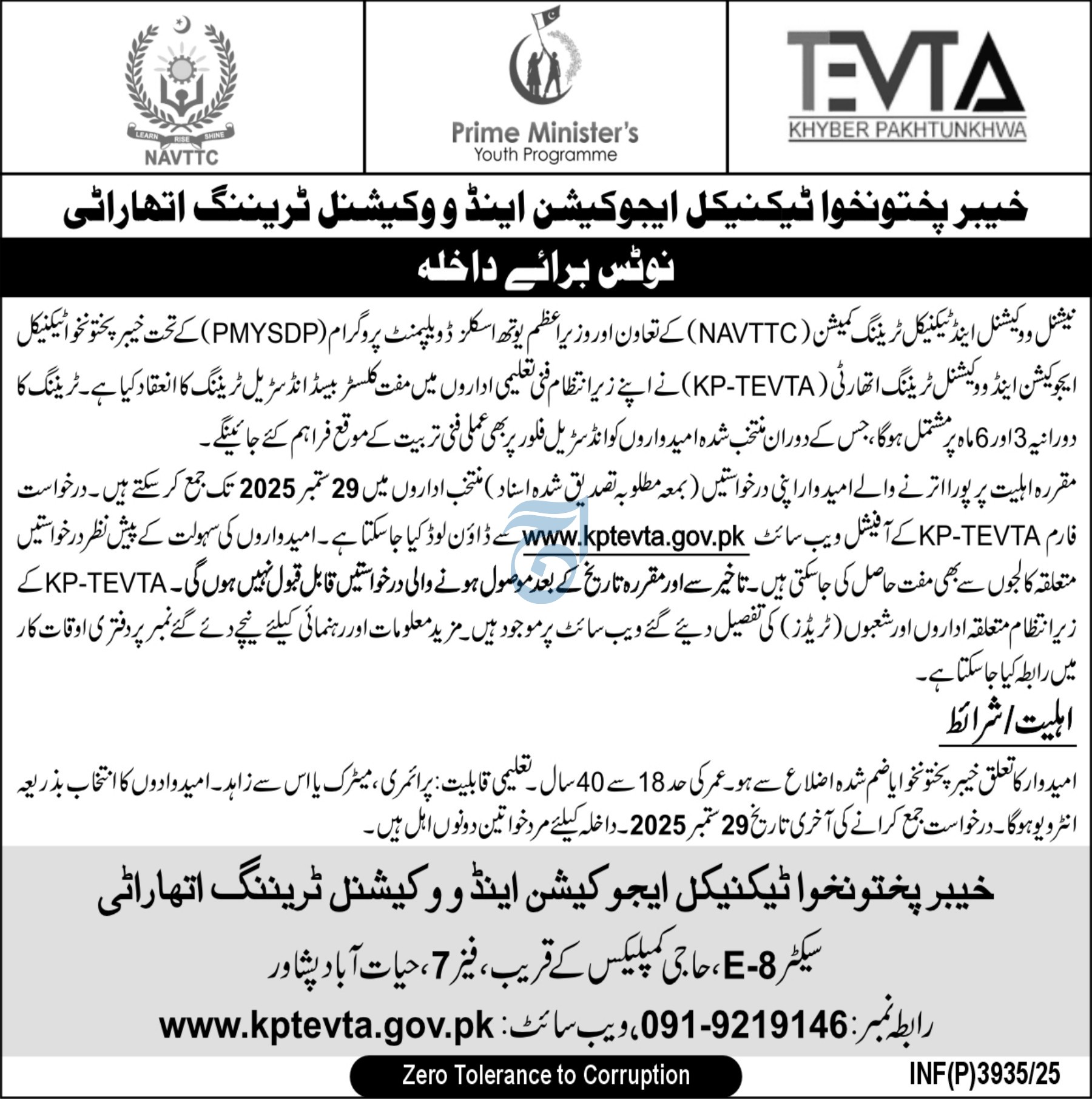 The Khyber Pakhtunkhwa Technical Education & Vocational Training Authority TEVTA, in collaboration with the National Vocational & Technical Training Commission NAVTTC and the Prime Minister’s Youth Skill Development Program PMYSDP, is pleased to announce free industrial training programs across its affiliated institutions.