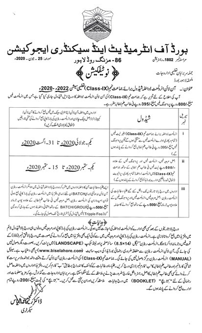 Board of Intermediate and Secondary Education Lahore has announced the enrollment / admission form schedule for matric class part 1. The attached schools are required to submit the admission forms of their 9th class students. Lahore Board 9th Class Enrollment/Admission for 2020.