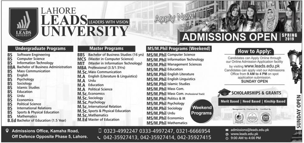Lahore Leads University Admissions Spring 2019