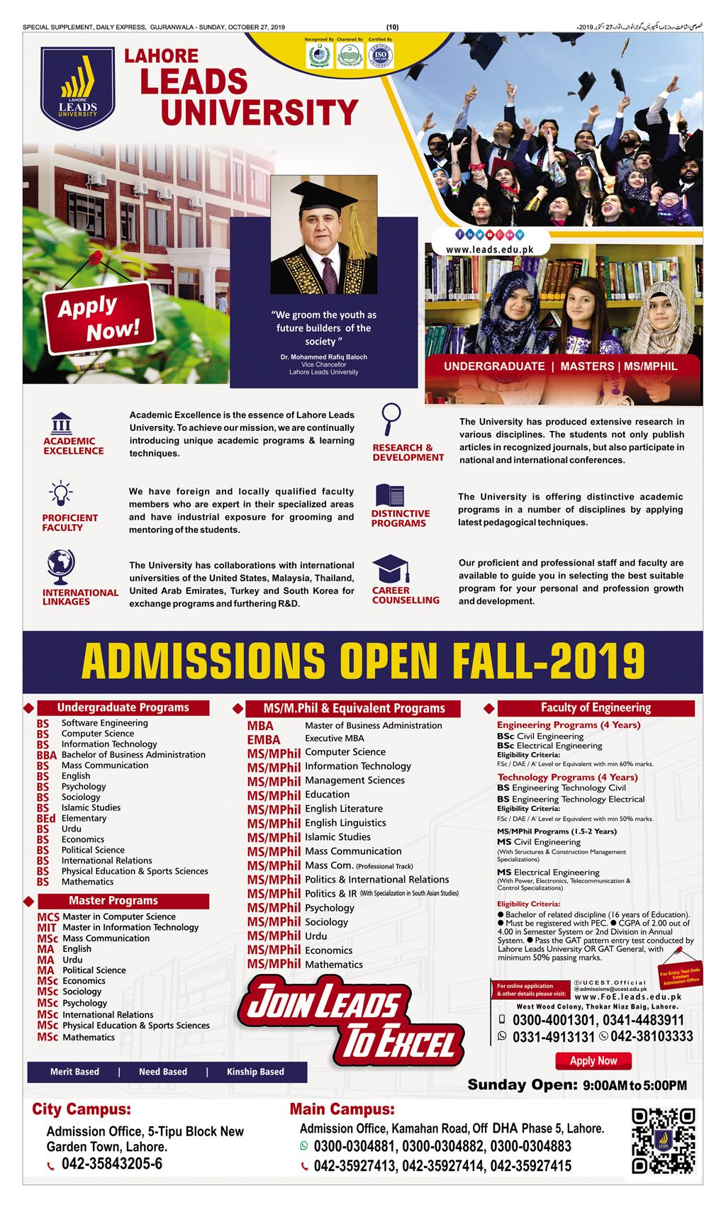 Lahore Leads University Admissions 2019