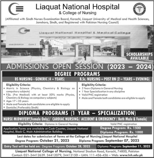 Admissions are now open for the year 2023 at Liaquat National College of Nursing, offering a range of exciting programs. Aspiring nursing professionals can seize this opportunity to embark on a fulfilling career in healthcare.