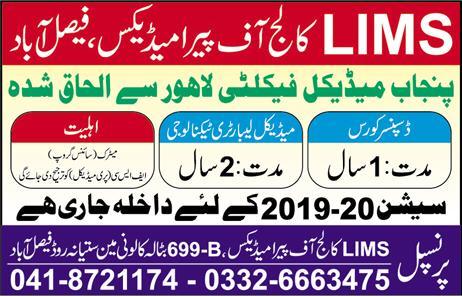 LIMS College of Paramedics Courses admissions 2019