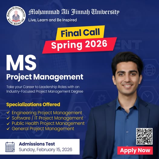 According to the MAJU Admission Notice for MS Project Management 2026, the MAJU Karachi is offering a comprehensive MS program designed to meet current market demands. Specializations include Engineering Project Management, Software and IT Project Management, Public Health Project Management, and General Project Management, giving students the flexibility to align their studies with their career goals.
