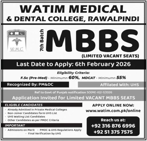 MBBS Program Admissions at Watim Medical and Dental College 2026