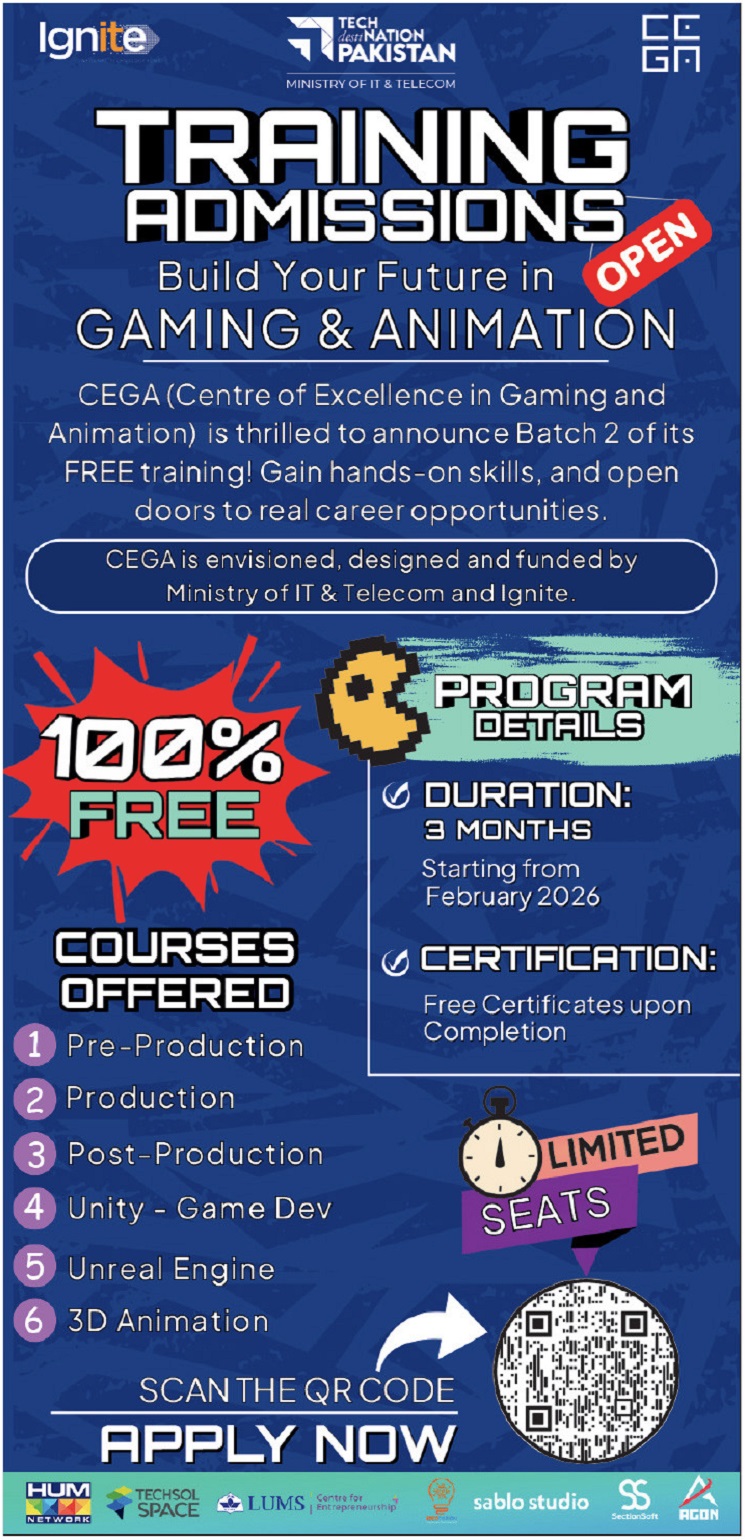 As part of the Tech Nation Pakistan vision, this program is designed to provide hands-on skills that translate directly into career opportunities. The Centre of Excellence in Gaming and Animation has structured this second batch of training to be 100% Free, ensuring that financial barriers do not hinder talented individuals from accessing world-class education.