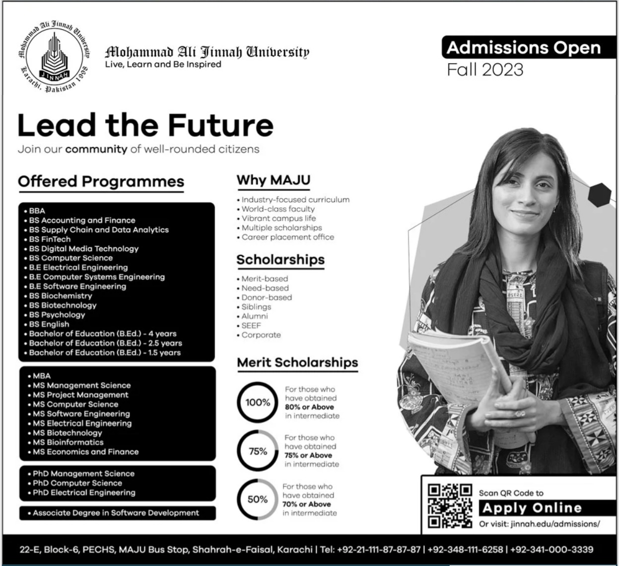 At Mohammad Ali Jinnah University, we foster holistic development, critical thinking, and industry-relevant expertise. Join us in shaping a successful future while becoming a part of our rich legacy. Your journey towards academic prowess and personal growth begins here. Apply now for Mohammad Ali Jinnah University Admissions 2023.