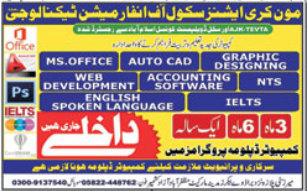 Moon Creations School of Information Technology is seeking applications for admissions 2020 in MS Office Course, Auto Cad, Graphic Designing, Web Development, Accounting Software, NTS, English Spoken Language, IELTS Course.