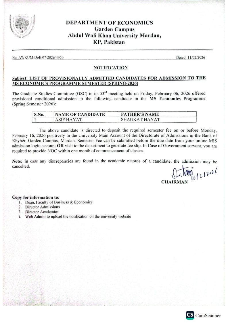 As the academic community responds positively across social platforms, the release of the results has become a trending topic among students and educators alike. For aspirants of MPhil Public Policy & Governance and MS Economics Spring 2026, this notice signals the start of a transformative educational chapter at AWKUM Prospective scholars are encouraged to check their names and follow the university’s guidance for enrollment procedures