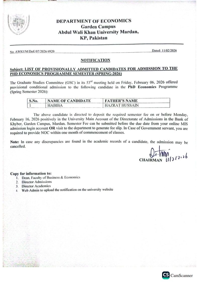 The anticipation is over as Abdul Wali Khan University Mardan releases the official PhD Economics admission list for Spring 2026, marking a milestone moment for aspiring researchers nationwide. Students who have been eagerly waiting for the MS Economics Spring 2026 and MPhil Public Policy & Governance outcomes can now celebrate their progression toward advanced academic goals. This announcement from the Department of Economics at Garden Campus is a testament to academic merit and commitment to educational excellence in KP, Pakistan.