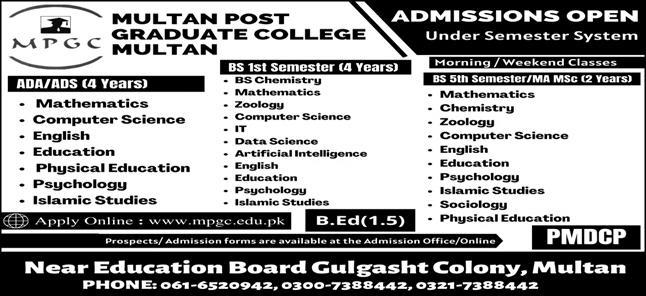 Multan Post Graduate College Admission 2024
