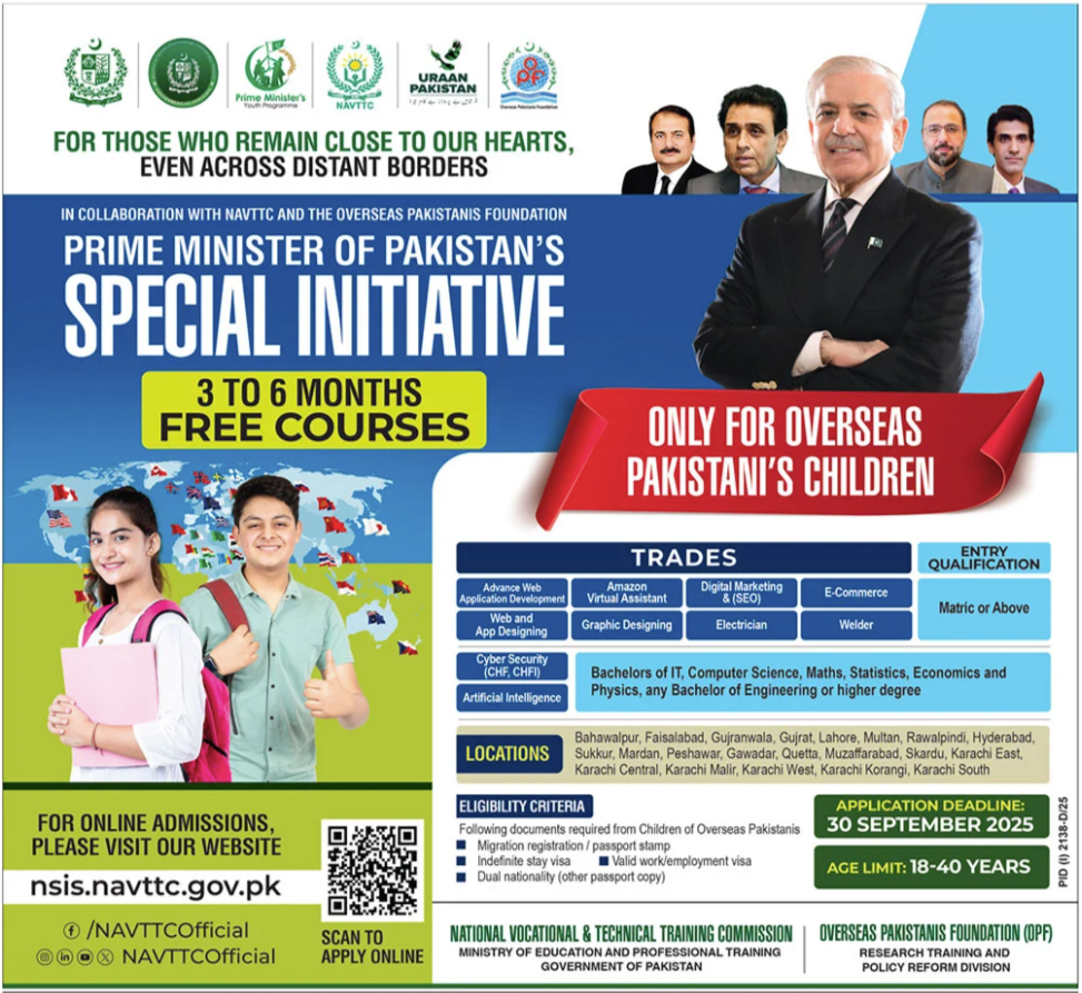 NAVTTC National Vocational & Technical Training Commission, and the Overseas Pakistanis Foundation OPF, a special initiative has been launched to empower the children of Overseas Pakistanis with world-class vocational training — absolutely free of cost.