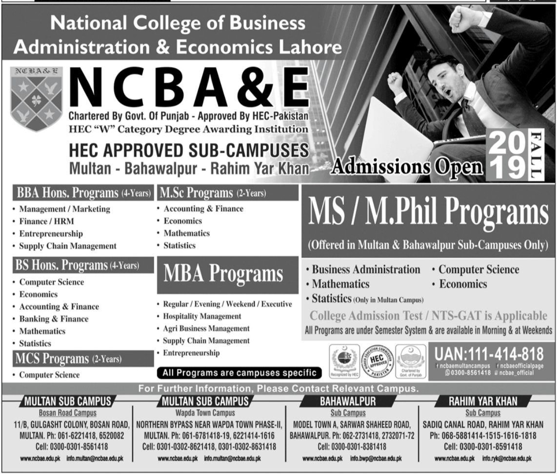 National College of Business Administration & Economics Lahore Advertisement