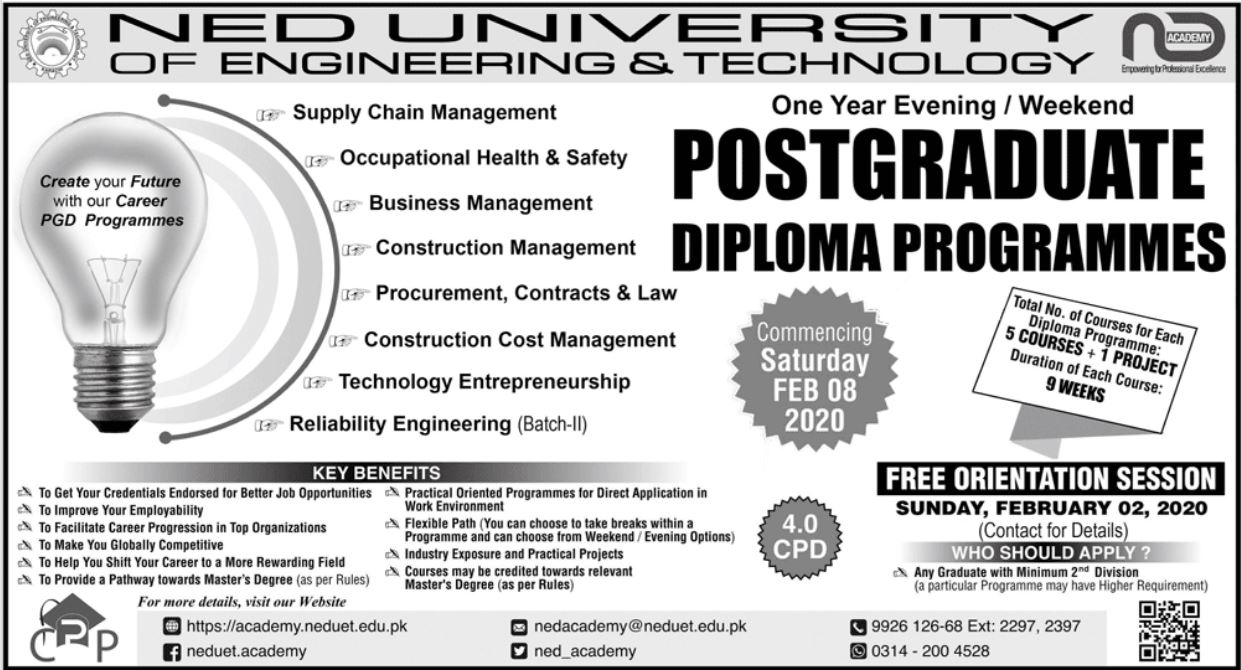 NED University of Engineering & Technology Admission 2020
