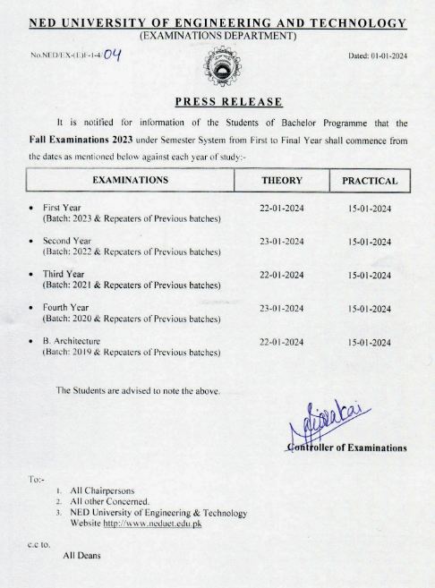 This press release serves as a vital source of information for students and faculty alike, ensuring a smooth and well-organized examination process at NED University. All stakeholders are encouraged to stay informed and adhere to the provided schedule.