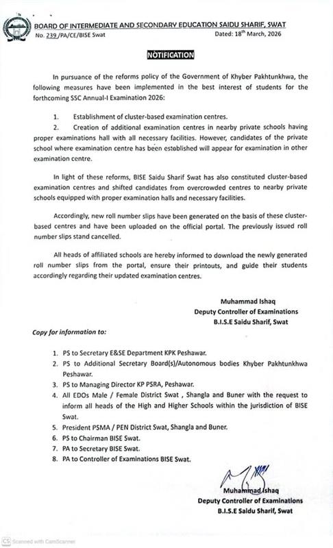 School heads in Swat, Shangla, and Buner have been instructed to print these new documents and guide their students accordingly. If you are looking for the BISESS Matric exam date sheet 2026, ensure your center matches the one listed on your new slip. These KPK education reforms aim to provide a "cheating-free" and comfortable environment.