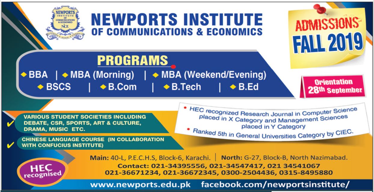 NICE, BS BBA B.Com BEd MBA admissions 2019