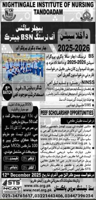The Nightingale Institute of Nursing, a registered and recognized institution, announces admissions 2025-2026 for the 4-Year Bachelor of Science in Nursing BSN Degree Program for the session 2025–2026. Applications are invited from male and female candidates who meet the required eligibility criteria.