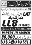 Pakistan College of Law Lahore, Affiliated with Punjab University and Bahauddin Zakariya University, is offering Admissions and looking for Applications from interested for Admissions to LLB Program. LLB program will be completed under duration of 5 Years. Exam will be utilized in March. Admissions are open for Academic Session 2020-2025.