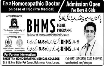 Pakistan Homeopathic Medical College BHMS admissions 2019