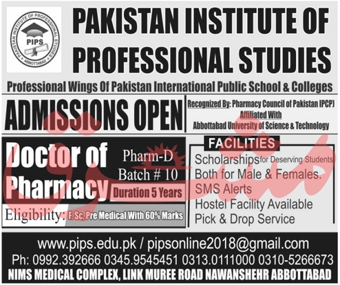 Pakistan Institute of Professional Studies Admission 2020 announced for the session of 2020 in the Doctor of Pharmacy DPT.