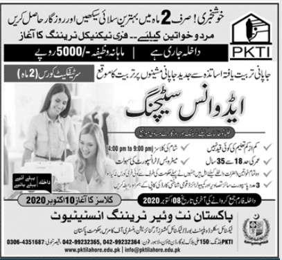 Pakistan Knitwear Training Institute PKIT has announced admissions 2020 in Advance Stitching in Lahore. Its a 2 month certificate course. Last date to apply is 8 October, 2020.