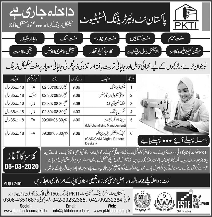 Pakistan Net ware Training Institute Admission 2020 announced for the Course in Fashion Designing, Quality Control in Garments, Nutting Machine Operator etc. The Students can get their Admission form from the Pakistan Net ware Training Institute. The Classes will starts from 5th March, 2020.