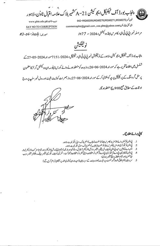 Lahore, Punjab Board of Technical Education Lahore is making arrangements to conduct the practical exams of the Diploma in Vocational Girls, and the practical paper of Personal Grooming has been cancelled. The students can get the latest updates of PBTE Diploma in Vocational Girls Practical Exams 2024 Postpone. The practical exams was scheduled on 26-06-2024 and now according to the revised schedule, this practical exams will be conducted on 27-06-2024.