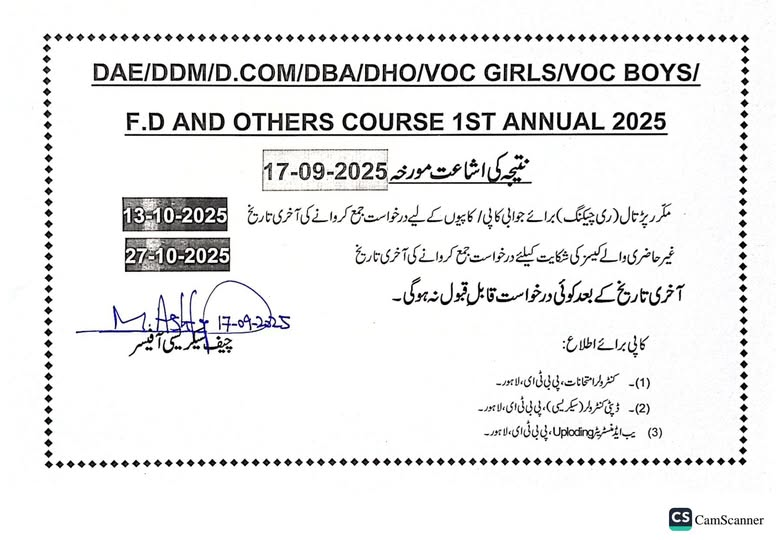 The students can apply for the re-totaling of their obtained marks by sending their application forms by the final date of 13-10-2025. The students, who have absent cases, they can submit their application forms by the target date of 27-10-2025 and no application will be entertained after this deadline.