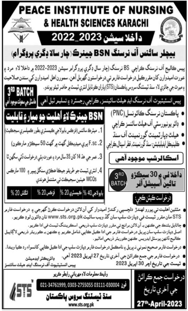 Peace Institute of Nursing and Health Sciences Admission Session 2022 2023