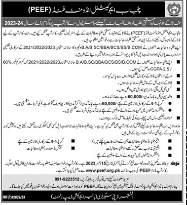 The Punjab Education Endowment Fund PEEF is delighted to announce master-level scholarships designed for talented and deserving students hailing from FATA/Merged areas for the academic session 2023-24. The candidates can check that FATA/Merged Area Students Avail PEEF Master-Level Scholarships.