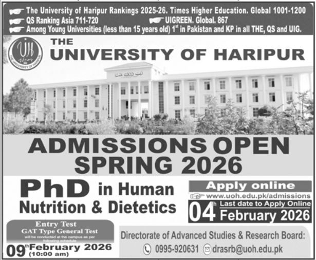 PhD Program Admissions at The University of Haripur 2026
