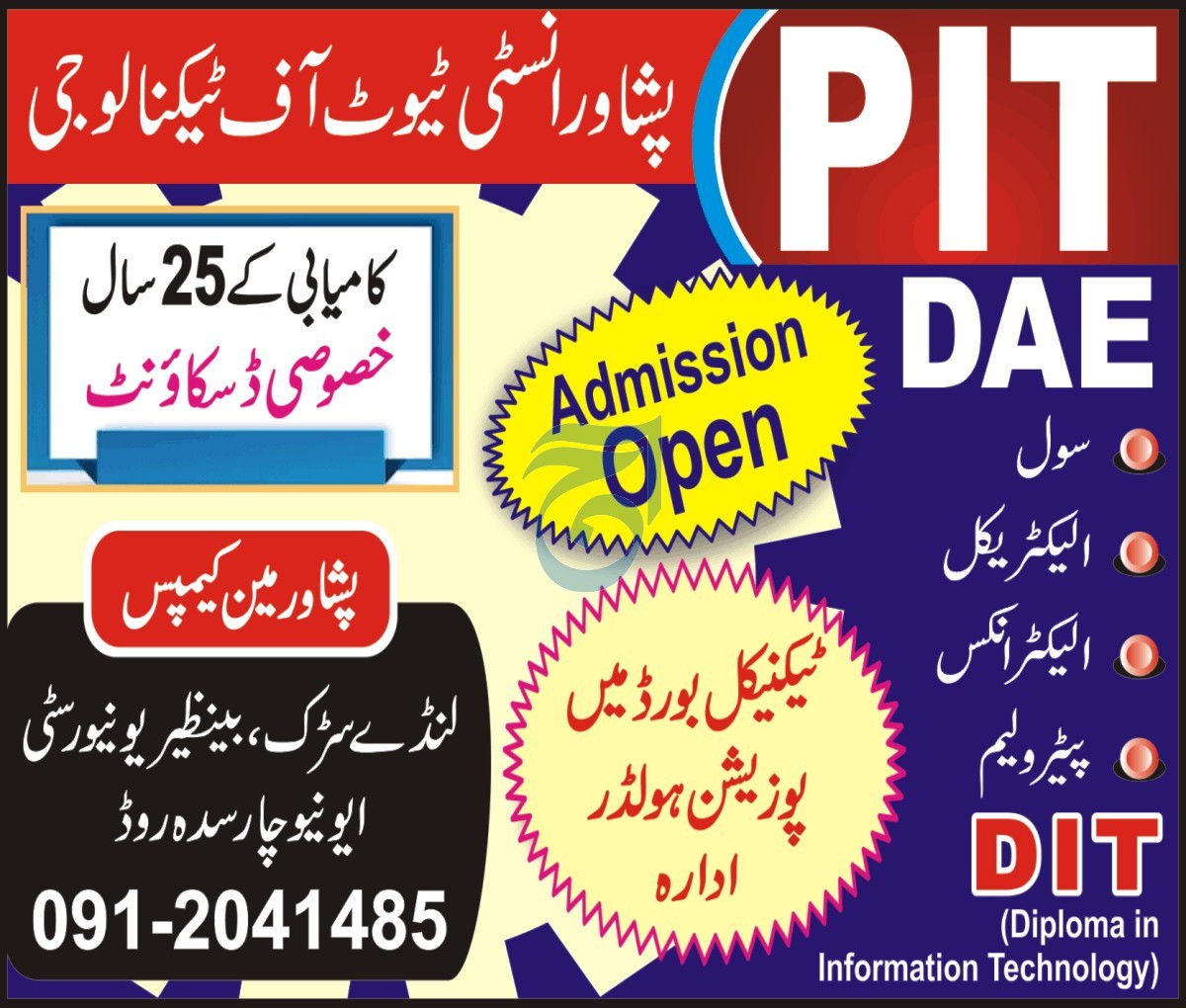 25 Years of Success: A Special Discount .Celebrating a quarter-century of educational excellence, Peshawar Institute of Technology is offering a special discount to all prospective students. This is not just an opportunity to learn from the best but also a chance to do so at a discounted rate, making quality education more accessible to everyone.