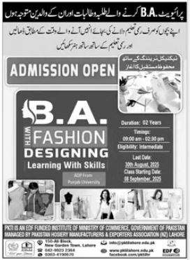 PKTI is offering a unique, government-supported program for students pursuing a private B.A. degree. Alongside your formal studies, gain hands-on expertise in Fashion Designing — a skill that opens doors to careers in design, textiles, retail, and entrepreneurship.