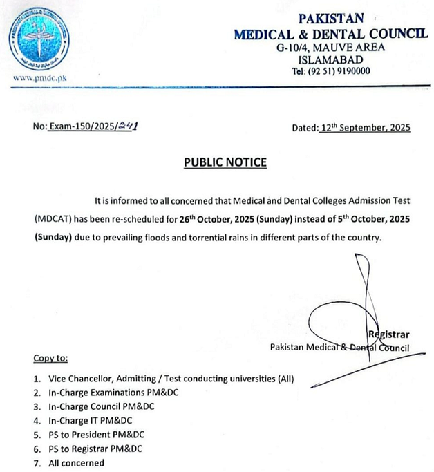 PMDC Postponed MDCAT 2025 Exam Due to Flood Emergency