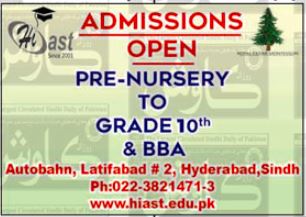 Pre Nursery to Matric and BBA Classes Admissions at HIAST 2026