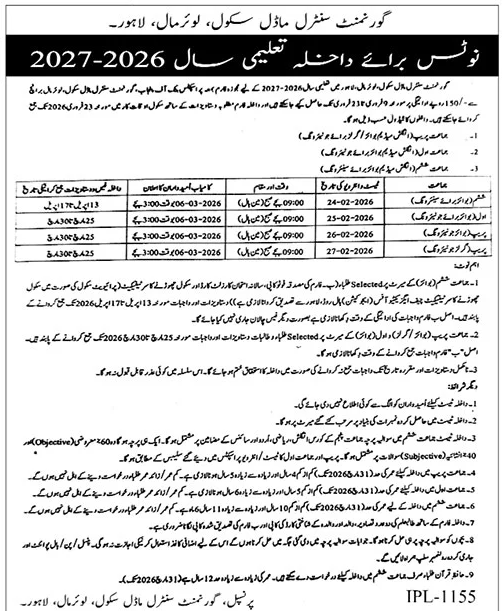 The Government Central Model School, Lower Mall, Lahore has officially released its admission notice for the academic session 2026-2027. As a premier institution in the region, the school is inviting applications for several key levels, ensuring a high standard of education for boys and girls in Lahore. Interested candidates can now prepare for GCMS admissions 2026 by following the newly released schedule and eligibility guidelines.