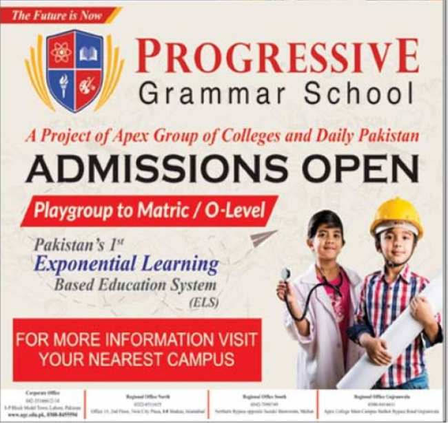 Progressive Grammar School is seeking applications for admissions 2021 in Playgroup to Matric / O-Level in Karachi.