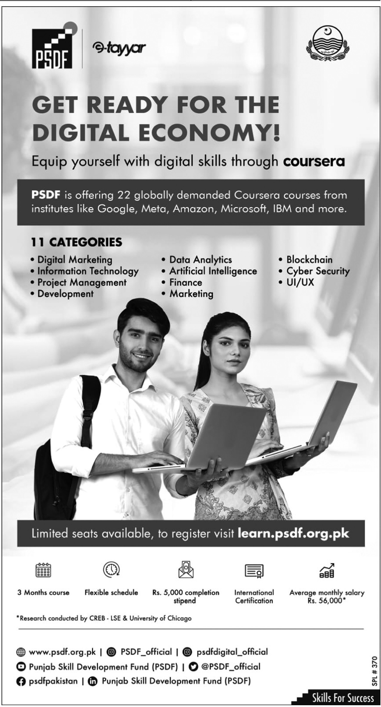 Unlock your potential with PSDF Free Online Courses Admissions 2024! Embrace the future of learning with an array of dynamic courses tailored to suit your aspirations. Dive into the realms of Digital Marketing, Information Technology, Project Management, Development, Data Analytics, Artificial Intelligence, Finance, Marketing, Blockchain, Cyber Security, UI/UX, and beyond.