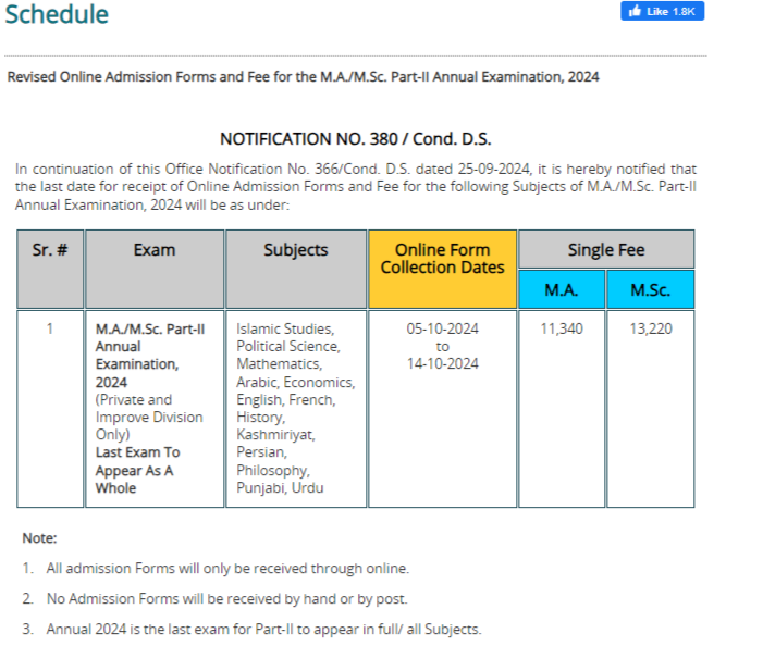 Lahore, University of the Punjab is going to initiate their PU MA / MSc Part 2 Annual Exams 2024 for the eligible students. The students, who want to appear in their master degree annual exams for the year 2024, they can submit their application forms according to their PU MA / MSc Annual Exams 2024 Revised Online Admission Schedule. The candidates can send their application forms with the deposit of the normal fee from 05-10-2024 to 14-10-2024.