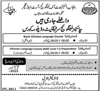 Punjab Institute of Language, Art, and Culture: Your Gateway to Learning Chinese and Hajj Certificate Courses opens admission 2023-24