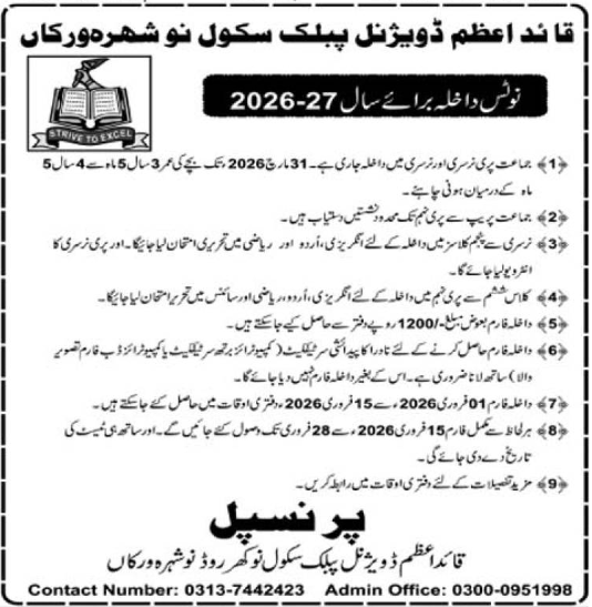The Quaid-e-Azam Divisional Public School QDPS, Nowshera Virkan, has officially announced its QDPS Admissions 2026 for the upcoming academic session 2026-27. This announcement marks a significant opportunity for parents in the region to secure a place for their children in one of the areas most reputable educational institutions. The school is currently accepting applications for various levels, ranging from Pre-Nursery to Class IX.