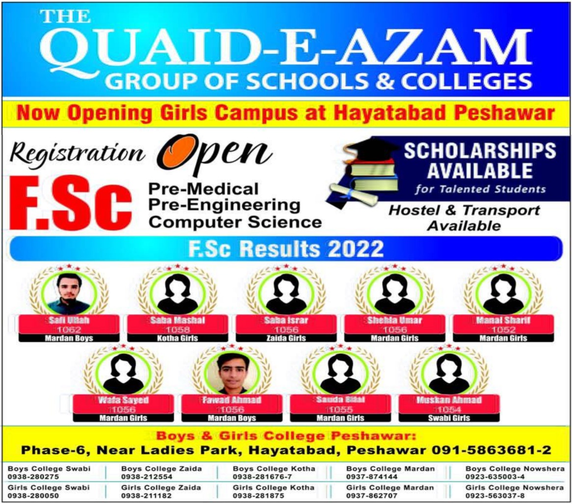 Quaid-e-Azam Schools & Colleges are thrilled to announce the commencement of admissions for the year 2023. The institution offers a range of courses including F.Sc Pre-Medical, Pre-Engineering, and Computer Science, catering to aspiring students diverse academic interests.