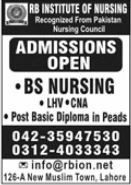 RB Institute of Nursing BS LHV CNA Admission 2024