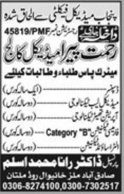 Rehmat Paramedical College Multan Admissions 2020