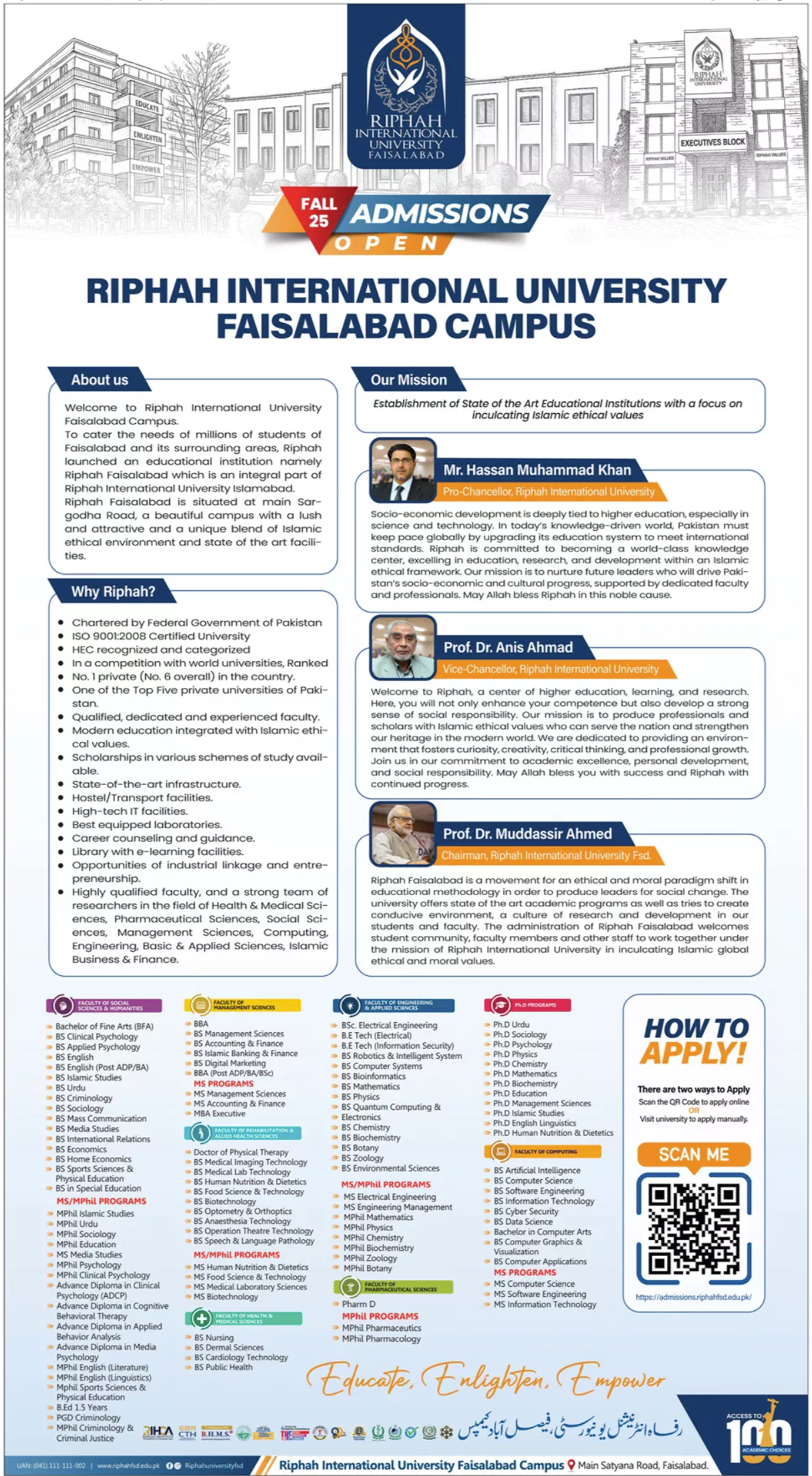 Join Riphah – where education meets ethics, and excellence leads to empowerment.