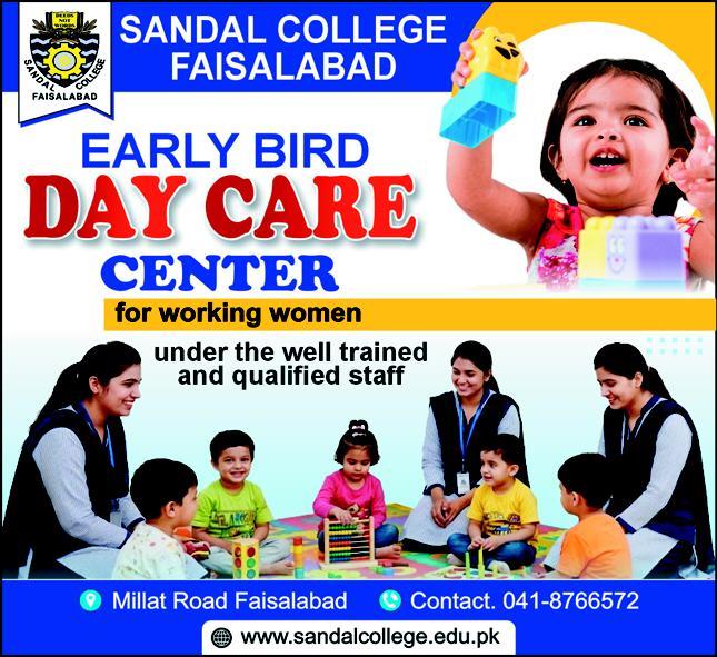 Recognizing the needs of professional families, Sandal College Faisalabad has launched its Early Bird Day Care Center, specifically designed for working women. Located at the Millat Road campus, this facility provides a safe, nurturing, and educational environment for young children. By integrating high-quality childcare with the colleges established academic atmosphere, the center aims to offer peace of mind to mothers as they pursue their professional careers.