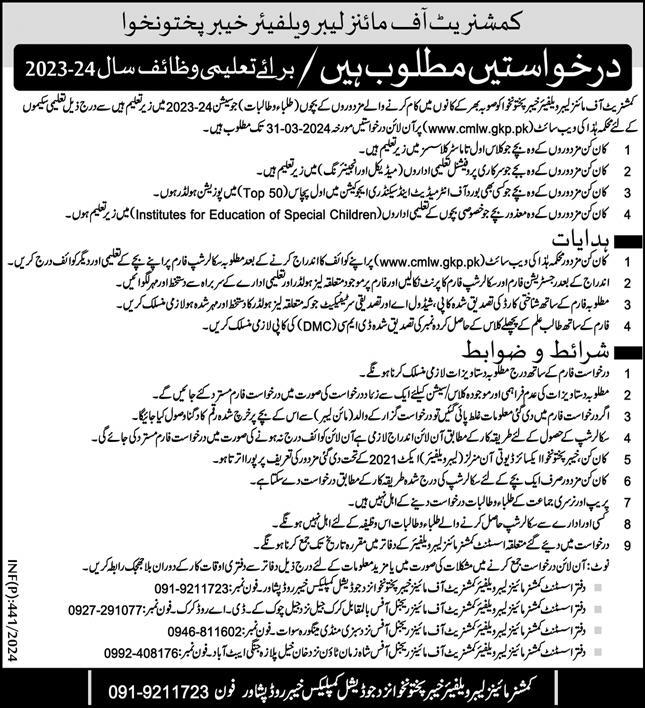 The Commissionerate of Mines Labor Welfare Khyber Pakhtunkhwa is pleased to announce scholarships for the academic session 2023-24, catering to the educational needs of children from families of mine workers across the province. The students can get the latest updates of Scholarship Opportunity for Children of Mine Workers in KPK.