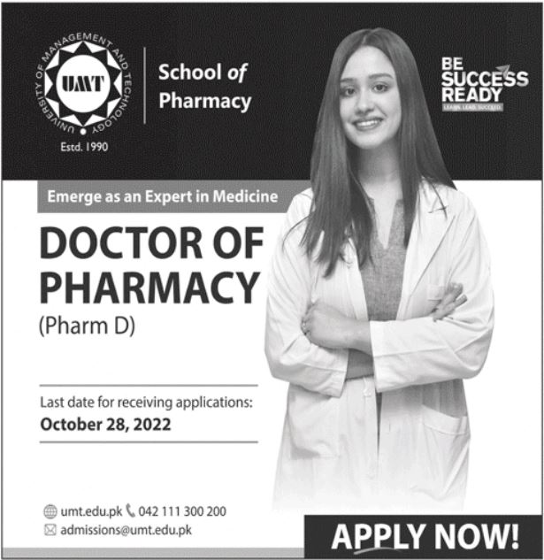 School of Pharmacy has announced admission for the year 2022. School of Pharmacy is offering Program of Doctor of Pharmacy. Those student who want to take admission in these programs can visit the appropriate branch for further information as soon as feasible, submit a form before the admission closes. Last date of submission of application is Oct 28, 2022. This institution has well qualified staff and offering the highest level of education.