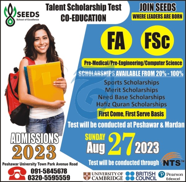 In the ever-evolving landscape of education, opportunities that propel talented students toward their dreams are invaluable. The Seeds Talent Scholarship Test 2023, slated for August 27th, 2023, is a beacon of such opportunity. This years test promises to be a gateway for aspiring scholars, with a focus on FA, FSC, Pre Medical, Pre Engineering, and Computer Sciences students.
